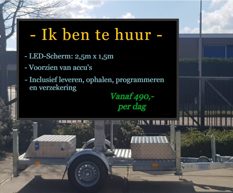 Bent u opzoek naar een tekstkar om teksten en\of afbeeldingen mee weer te geven? Bij klasse Verkeer kunt u een LED-scherm huren.